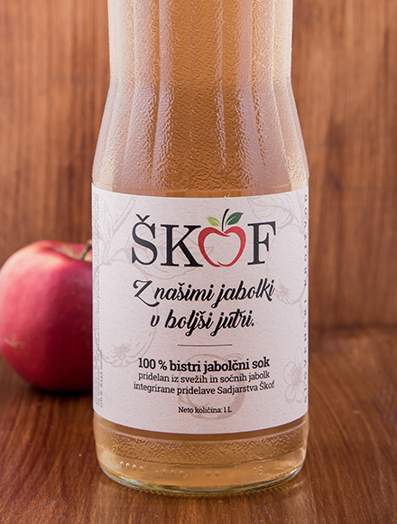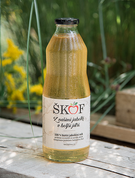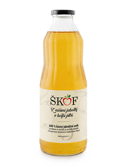 Ponujamo vam 100 % bistri jabolčni sok pridelan iz svežih in sočnih jabolk integrirane pridelave Sadjarstva Škof.